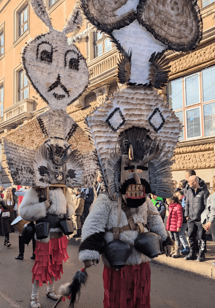 A nearby craft market sells local handicrafts, including handmade kukeri. My boyfriend and me returned with ourselves in kukeri form, and they are now sitting on our bookshelves to protect us from the evil spirits.