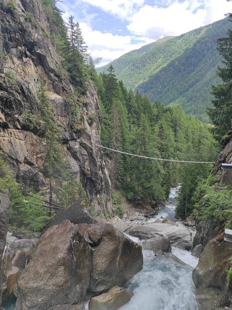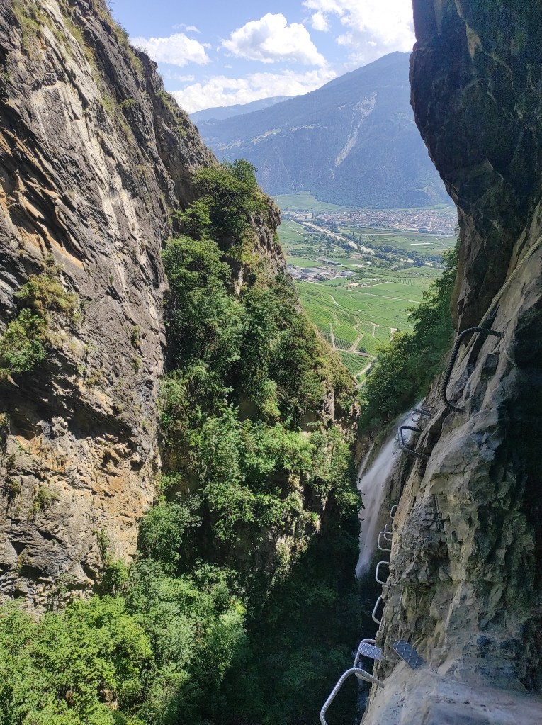The Via Farinetta, for example, climbs through a narrow gorge before cutting across a cliff face, with views over the valley. It takes you along scary overhangs before climbing to the top of the cliff. The views from up there are spectacular (or mundane, by Swiss standards). You can watch other people completing the via ferrata, and feel pretty pleased with yourself for having climbed the impressive route!